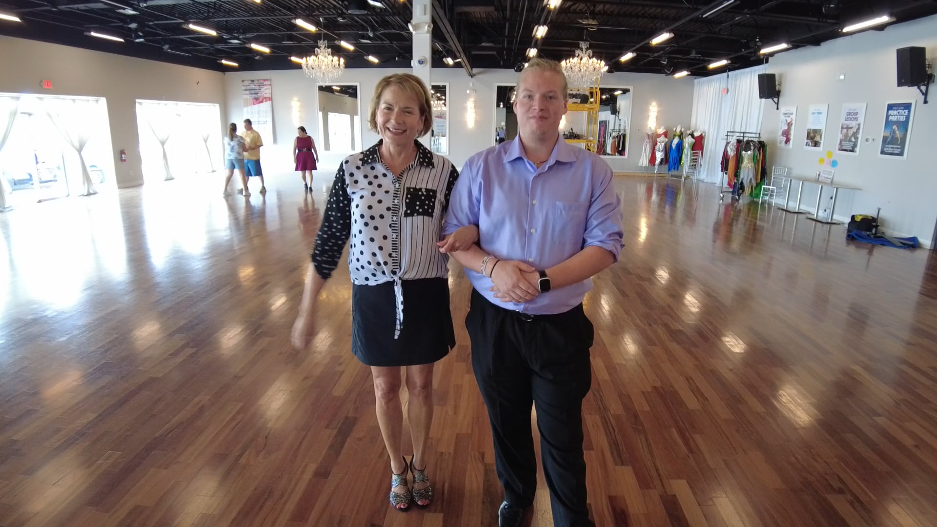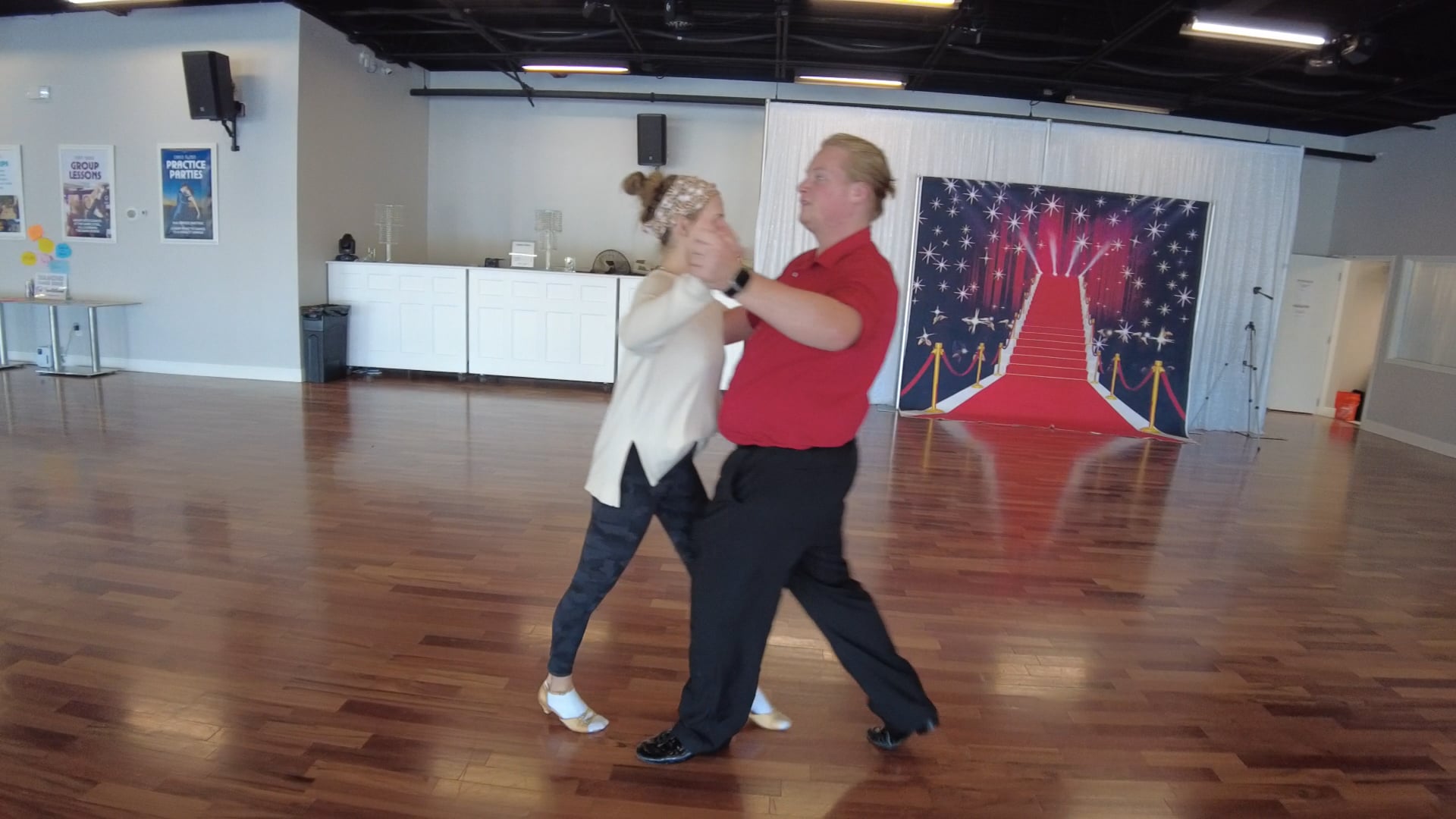 Neil Dancing in his Beginner Progress Check in Foxtrot at Dance Pizazz in O’Fallon, MO. Dance Pizazz is a studio specializing in Ballroom, Latin and