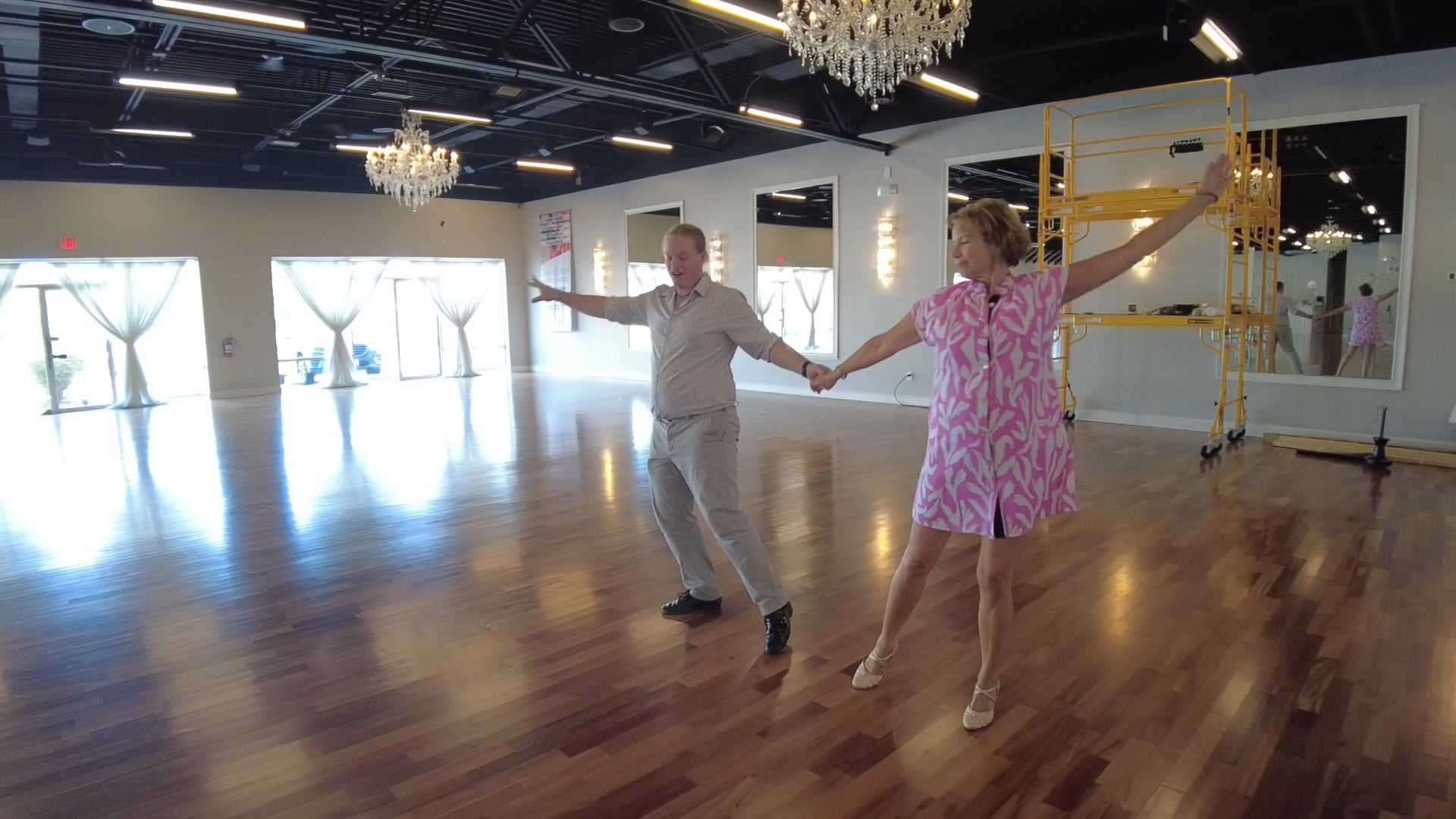 Joan Dancing in her Beginning Bronze 2 Progress Check in Rumba at Dance Pizazz in O’Fallon, MO. Dance Pizazz is a studio specializing in Ballroom, Latin