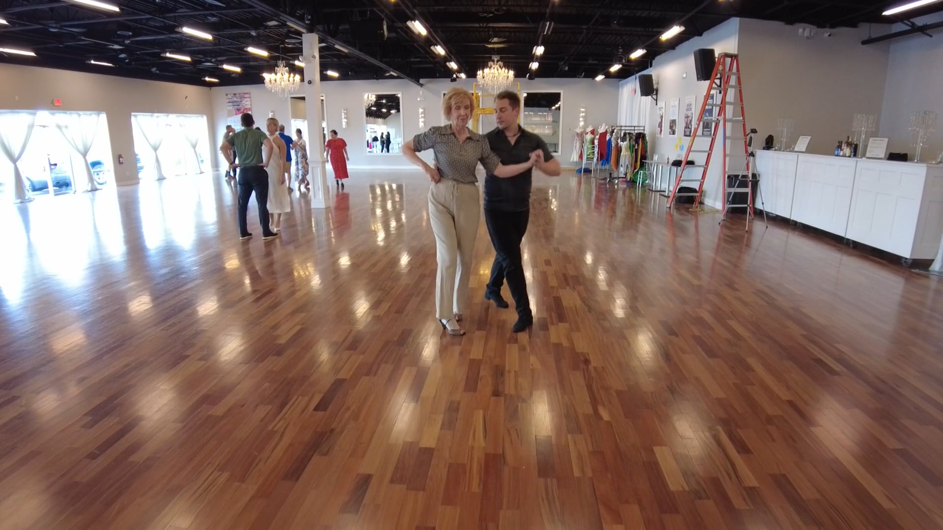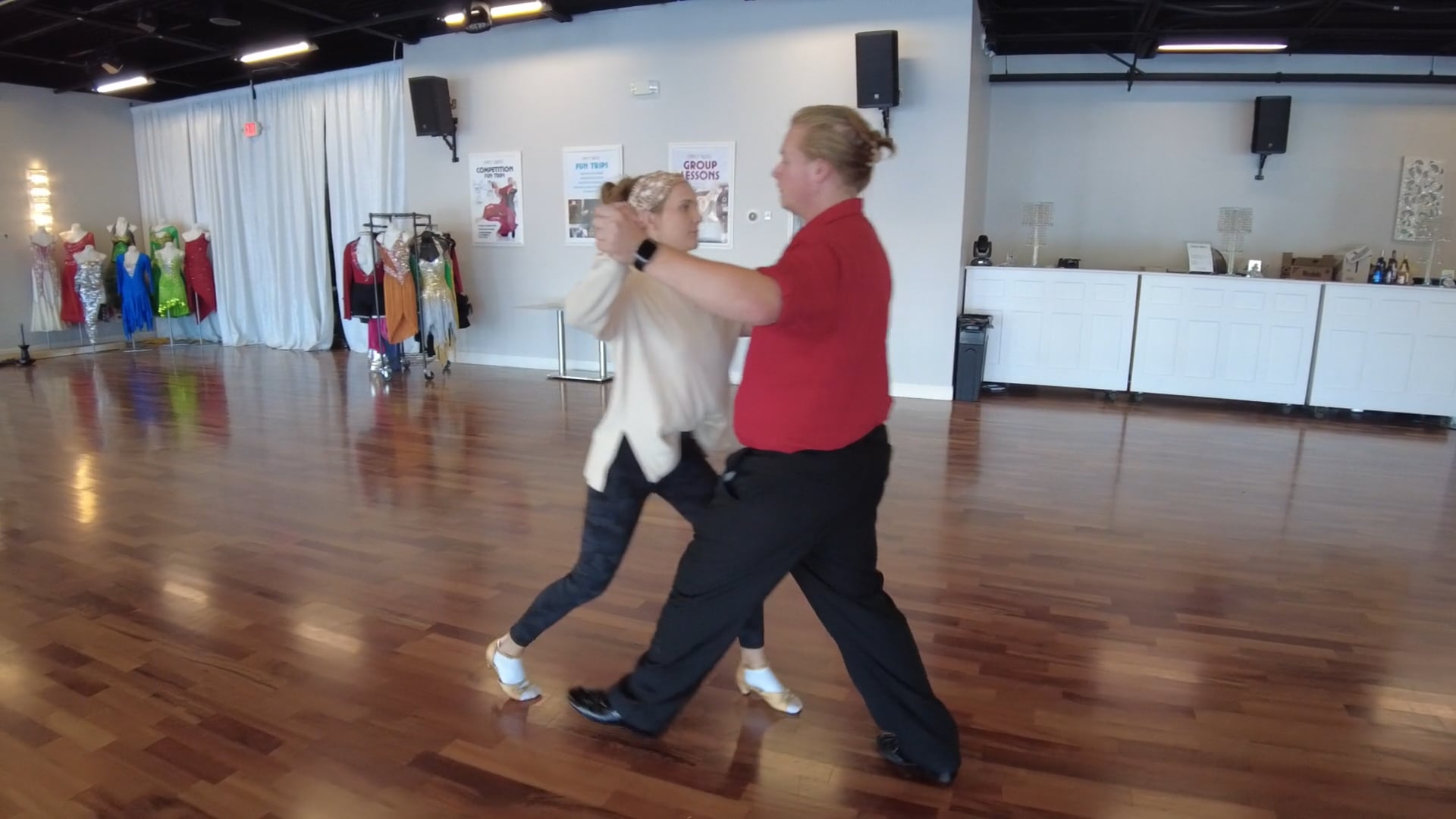 Joan Dancing in her Beginning Bronze 2 Progress Check in Tango at Dance Pizazz in O’Fallon, MO. Dance Pizazz is a studio specializing in Ballroom, Latin