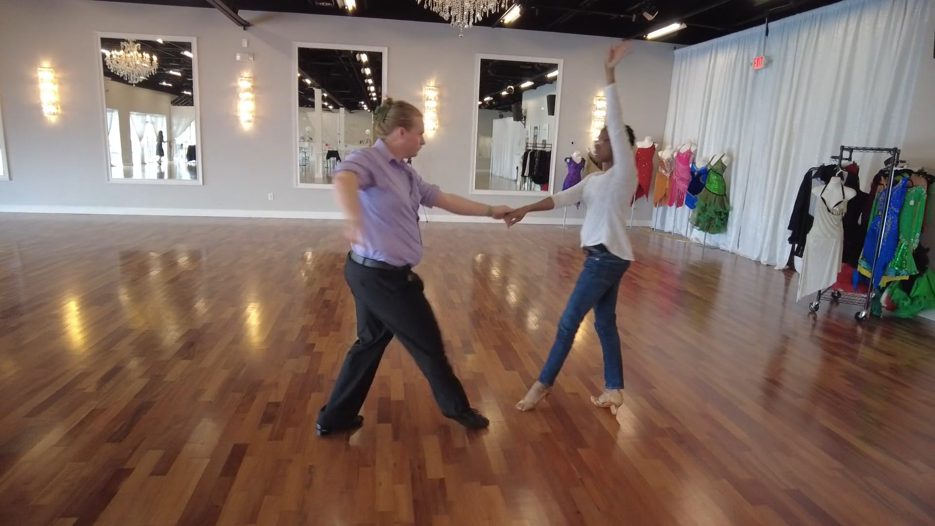 Rich dancing in his Beginner Progress Check in Salsa at Dance Pizazz in O’Fallon, MO. Dance Pizazz is a studio specializing in Ballroom, Latin and