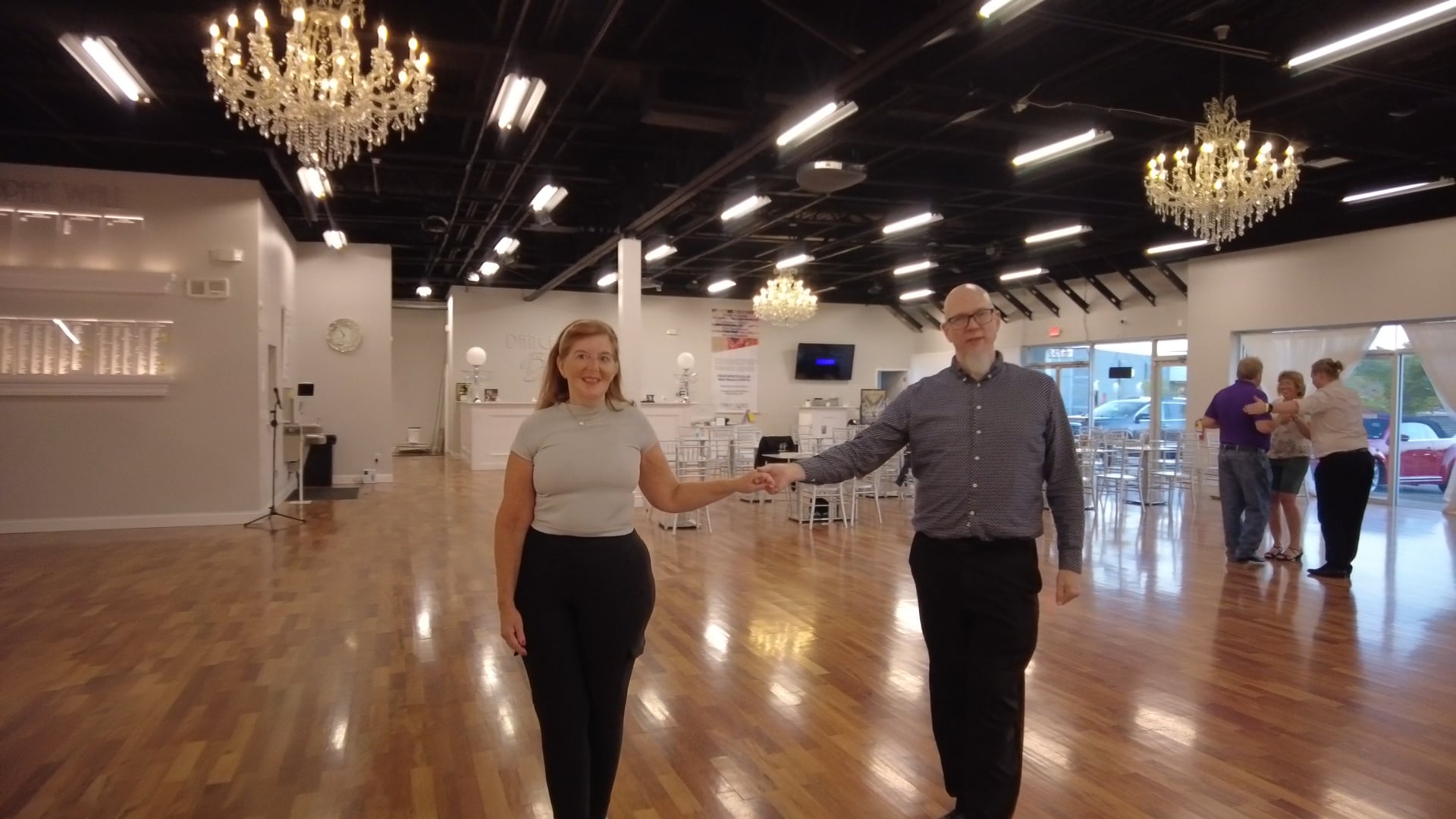 Laurie Dancing in her Beginning Bronze 2 Progress Check in East Coast Swing at Dance Pizazz in O’Fallon, MO. Dance Pizazz is a studio specializing