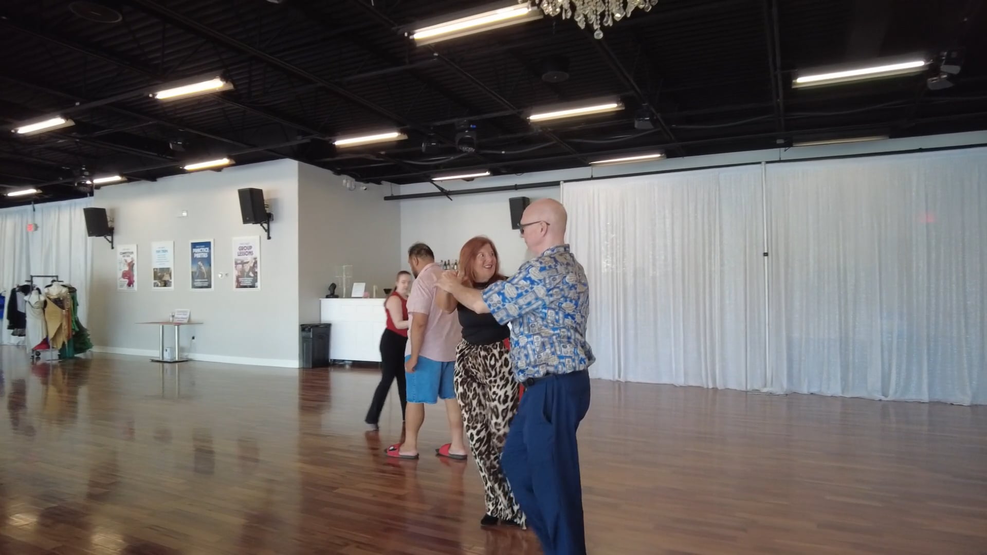 Laurie Dancing in her Beginning Bronze 2 Progress Check in Rumba at Dance Pizazz in O’Fallon, MO. Dance Pizazz is a studio specializing in Ballroom,