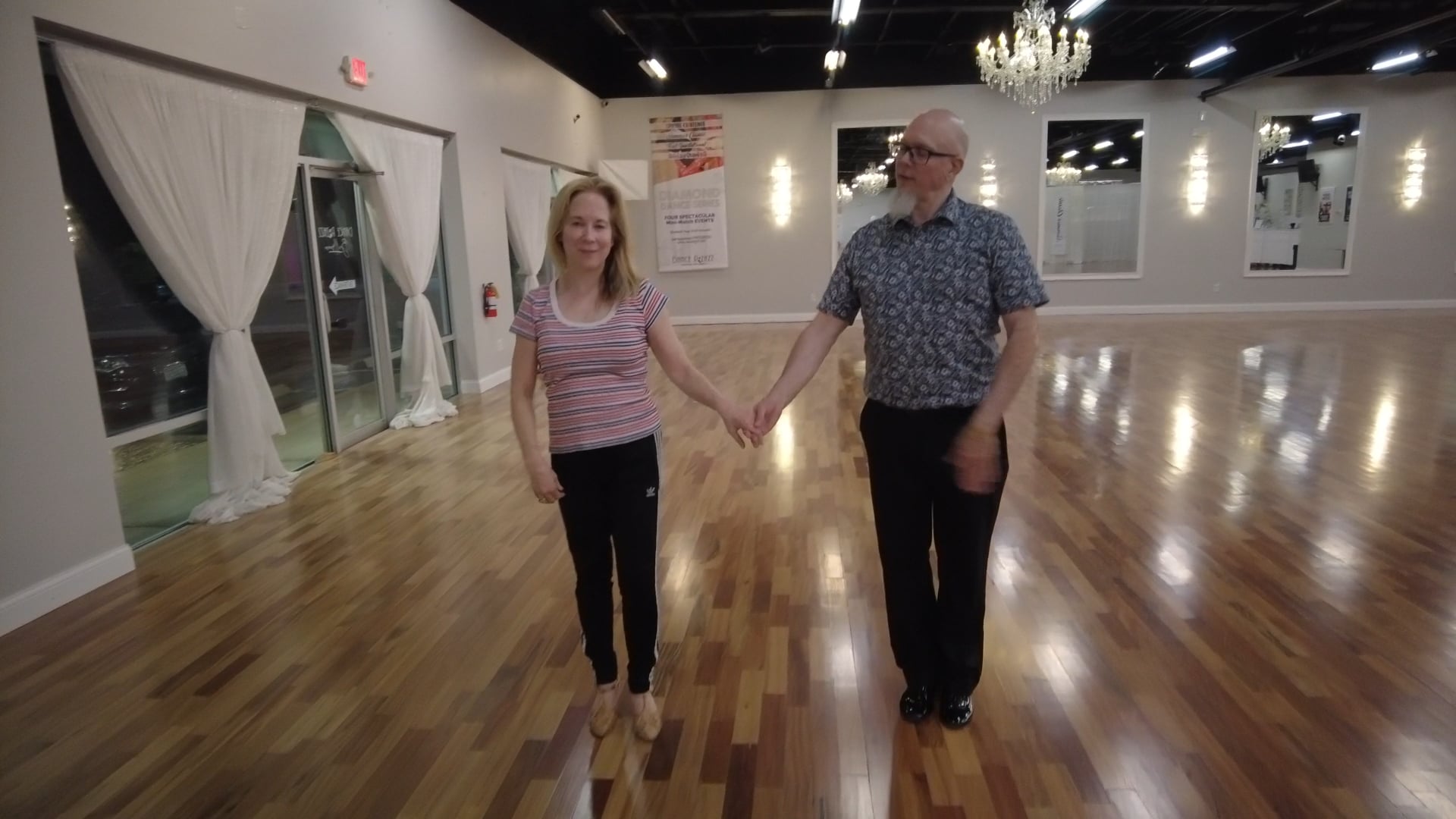 Laurie Dancing in her Beginning Bronze 2 Progress Check in Waltz at Dance Pizazz in O’Fallon, MO. Dance Pizazz is a studio specializing in Ballroom,